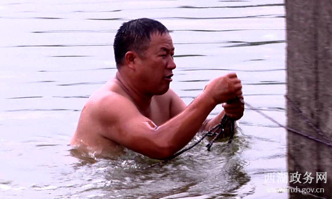 ?7月2日晚,西洲乡永安电排出现紧急险情,出水管东侧(穿堤建筑物)有水渗出、鼓花,流水中带有泥砂。巡查队员立即向乡防汛指挥部汇报。区防指接到上报后,迅速安排水利局技术人员赶到现场,经分析判断,确定为渗漏险情。 凌晨时分,区、乡防指组织抢险突击队员和永安村村民30余人投入应急抢险,田园村村民夏延安就是其中的一员。抢险队员们通过采取开沟疏通沥水,卵石填筑出水口压浸等技术手段,与内江缩小水位差,减少流速与压力,过滤沥水,防止带出泥沙,而这个时候需要水性好的队员立即到水下邻水坡启闭台周围用彩条布压袋土,进行防渗处理。 风雨中挺起脊梁,危难中担当责任。面对不断严峻的险情,身为防汛抢险队员的夏延安,不顾个人安危,主动请缨,把上衣裤子一脱,毫不犹豫地跳入水中,带领众人用沙袋奋力堵口,一会和队员们合力扯帆布,一会潜入水底找准位置,别看水下排险操作简单,但实践起来却非常难。主要有两个方面,一个是水下的能见度极差,整个排险全靠手摸,二是水里着力点难固定,要把彩条布压上,很耗力气,稍有不慎,容易体力不支。 经过大家三个多小时的奋战,这处漏口被及时堵住,避免了人民生命财产安全蒙受损失。在夏延安看来,“作为一名中共党员就要做到关键时刻站得出来,天灾来袭,我们党员必须得顶上去!”。正是这样一番朴实的话,让我们看到一个普通共产党员身上所散发的光辉! 夏延安今年49岁,田园村人,原田园村的团支部书记,18岁入党,是一名具有 31年党龄的老党员了,每年村上组织防汛工作,他都是村里的抢险骨干,一直坚守在前线,每天和工作人员一起现场巡防就是10多个小时,村干部们提起夏延安,也都赞不绝口。 在太阳的照射下,夏延安胸前的党徽熠熠发光,他是我区广大奔赴在一线防汛干部们的一个缩影,也正是有了这样一群可爱的人在负重前行,我们的岁月才能如此平淡静好!向你们致敬,辛苦了!