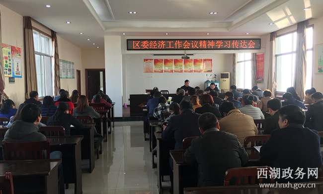?2月26日上午,西湖镇召开区委经济工作会议精神传达学习会。 会上,传达学习了区委经济工作会议精神,结合工作实际,为西湖镇2018年的重点、难点工作指明了方向。 镇党委书记周浩做总结发言,他说,西湖镇要完成“六大会战”的指定目标,要实现“区域中心、农业公园”,就需要每一个人都全身心的投入,需要每一个人都撸起袖子加油干,需要每一个人都有求真务实的精神。要成为一个“多面手”,不仅仅做好自己的本职工作,还要协助其他同事完成重要工作;要加强学习,把区委经济工作会的精神融会贯通,贯彻落实到日常工作中去;要奉献自己的最后一份力量,毫无保留的推进全镇的发展,夺取“六大会战”的全面胜利!