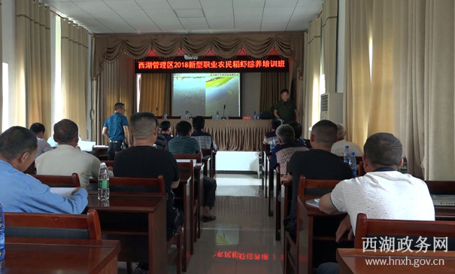 本培训班由区移民局、农业局、工会和名穗生态联合举办,计划于今年根据不同时节稻虾综养的特点举办6期培训班,同时筹划成立一个全区稻虾产业协会,依托市稻虾协会解决稻虾养殖技术、销售和虾米三个方面的问题。