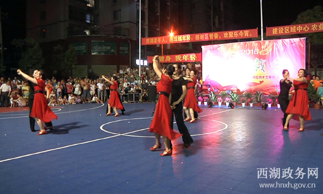 ? 6月29日晚,我区老年大学舞蹈班在区工会灯光球场举办了一场内容丰富、形式多样的才艺展示晚会,现场洋溢着浓浓的欢乐气氛。舞蹈班的200余名学员纷纷拿出自己的绝活,各显其能,他们中间年龄最大的70多岁、最小的50多岁,整个舞台精彩纷呈,场面十分火爆。区组宣统部部长周艳辉,区教育局、人社局、工会、妇联、老科协等部门和单位的领导观看了演出。 晚会在舞蹈《嗨起来!》中拉开序幕,紧接着,广场舞《鼓动天地》、四方舞《溜溜的她》、水兵操《拉萨夜雨〉、健身操《草原的夏天》、花球舞《幸福一起来》、交谊舞《错过缘份错过你》、伞舞《江南情》等节目展示了老年人精神文化生活丰富多彩,博得了全场观众的阵阵掌声。 整场晚会形式多样、高潮迭起,为老年人展示自我、展示才艺搭建了平台,充分体现了老年学员们老有所学、老有所乐的精神风貌。